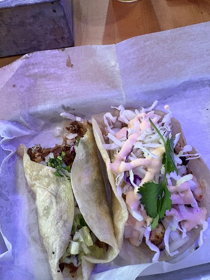 I enjoyed Pacific Coast Tacos on Washington Avenue with my Mexican friend Rafa. Tacos are art.