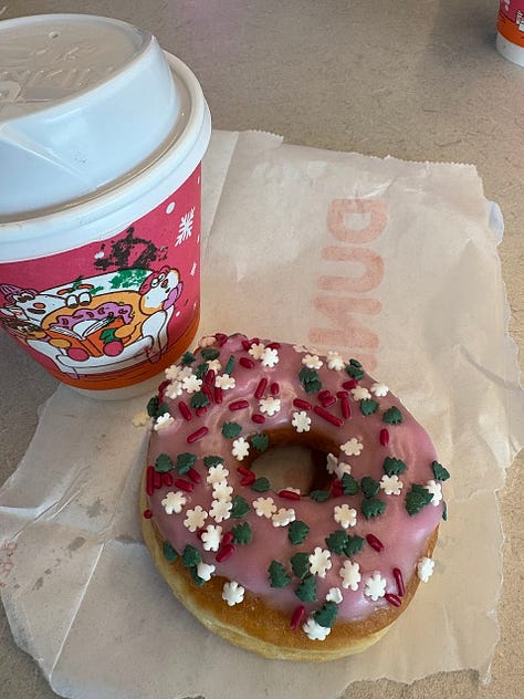 Picked out our Christmas tree yesterday on a warm Texas day (thank goodness for sun in December). After a long search for a tree that wasn’t trimmed and had the shape we wanted, we found it (you can see it in the picture below). Trimming it was a total adventure (it was my first time). After a few attempts, the selfie below confirms that we got it. The staff at Family Roots TX has a system for wrapping the tree before loading our 10 ft tree into the truck. I was impressed with the staff—they took care of every little detail, and how cool was the machine and the pulley system they have! After the hard work, we went for a Christmas donut at Dunkin’ and a burrito at Chipotle—well deserved, right?